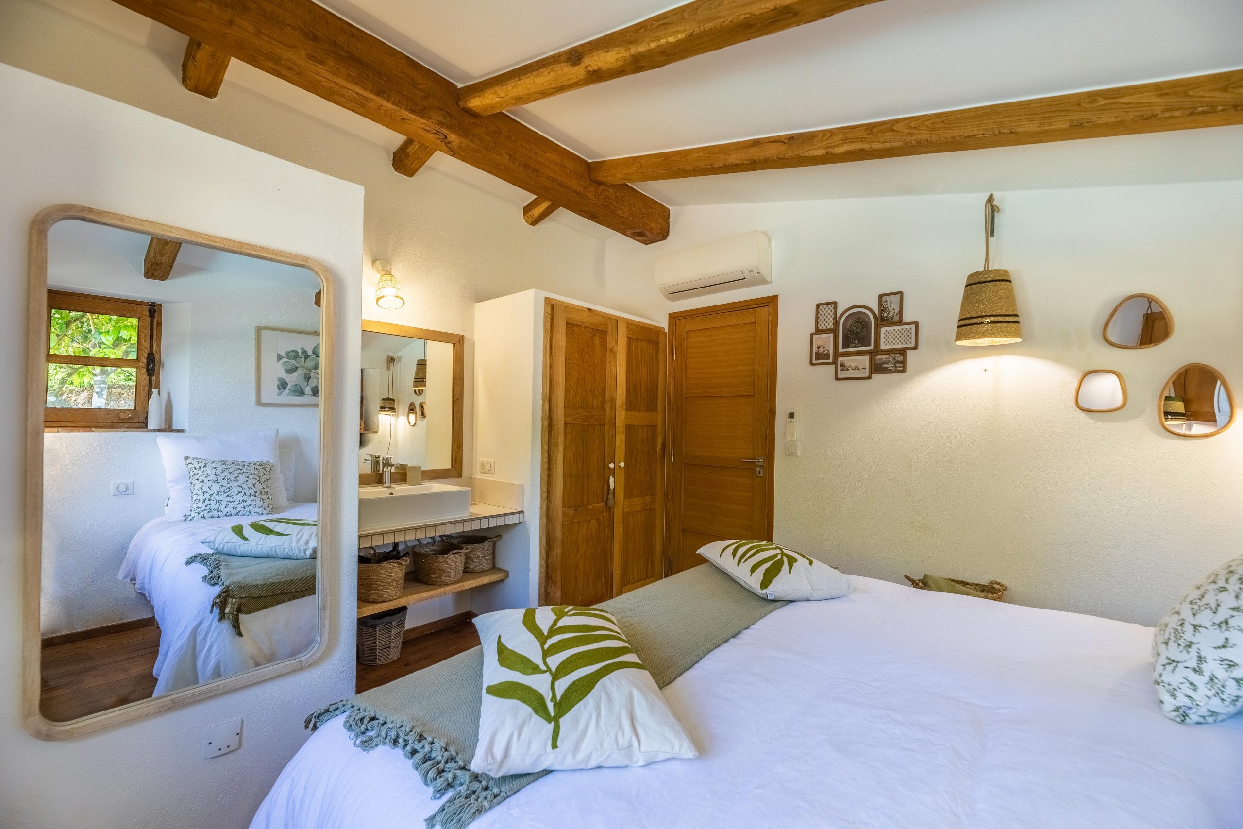 La Bergerie est composée de 2 chambres avec lit en 160×200 où dans l’une d’entre elle 2 lits en 80×200 si besoin, table de chevet, dressing, salle d’eau privative avec douche à l’italienne, toilette séparée, vue sur le maquis et les magnifiques montagnes de l’extrême sud.